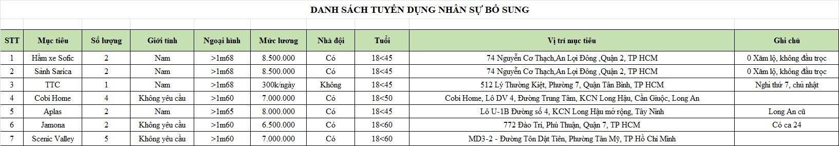 TUYỂN BẢO VỆ CÁC VỊ TRÍ :