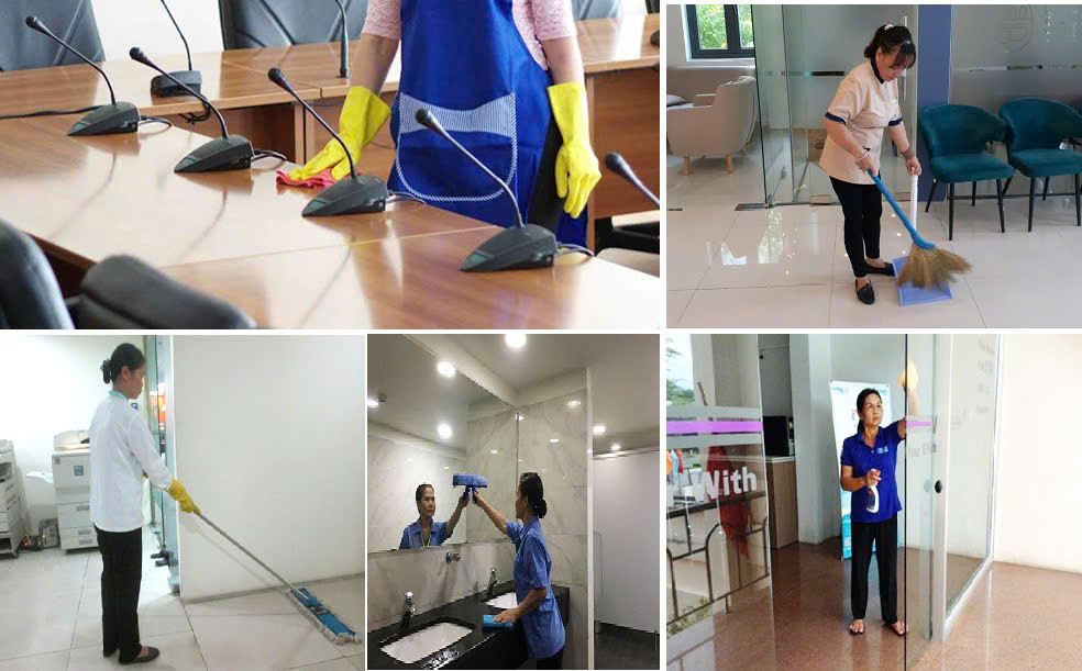 > Công việc quét dọn nhà mẫu, lau bụi , thu gom rác và vệ sinh toilet